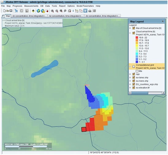 The source term data is also sent to the NBIÉK, where the Java-based RODOS (JRODOS) developed in the frame of an international cooperation is used for calculation of environmental dispersion. In order to provide a higher degree of reliability the DMCC NERWC compares the results of the RODOS with those of the SINAC, and develops recommendations on the necessary protective actions for the public based on their conclusions.